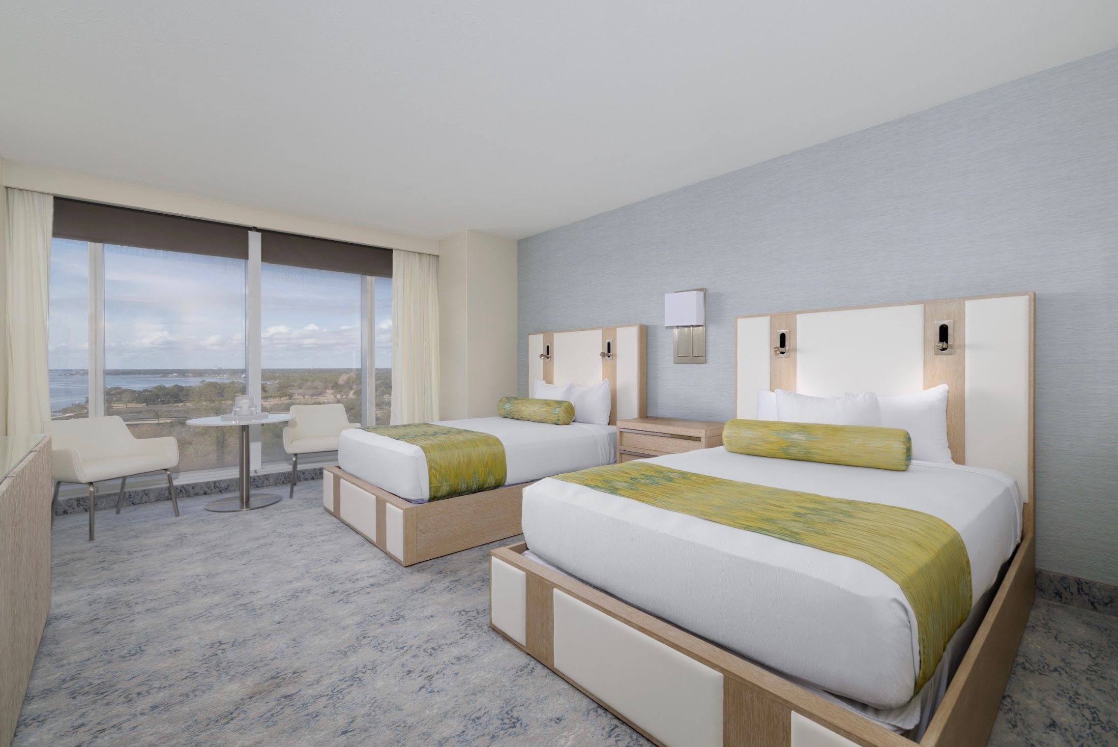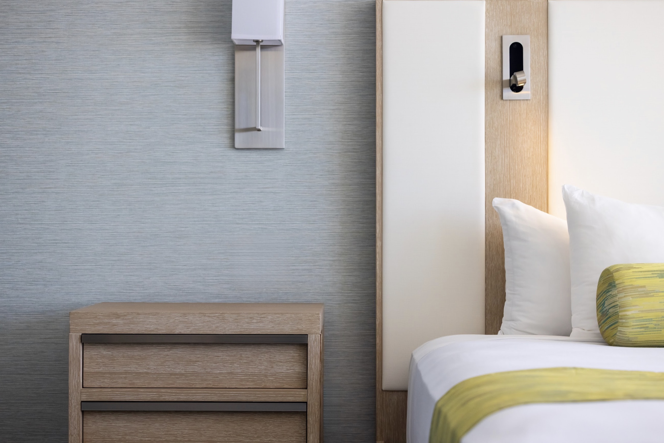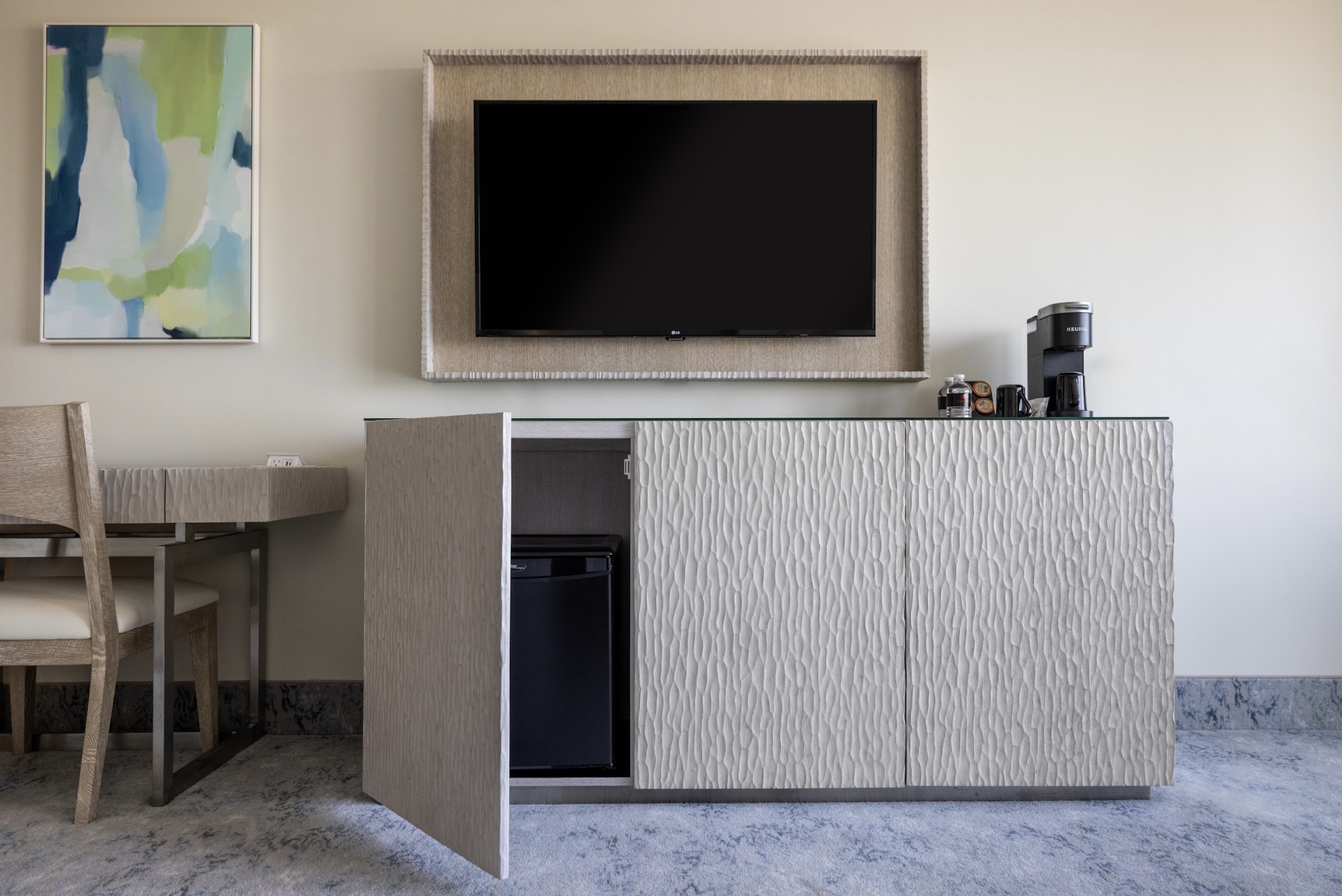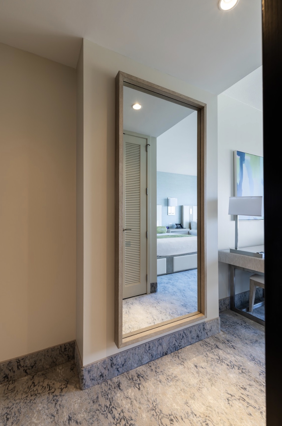 To celebrate its 10th anniversary offering hospitality, gaming, and innovation, the Scarlet Pearl Casino Resort launched an extensive makeover of its 300 guestrooms and suites. Beautiful views of the Mississippi Gulf Coast provided the palette of soft blues, bold greens, and sand tones. Bernhardt Hospitality provided a full custom package of casegoods and seating inspired by our award-winnning inline designs, including beds, desks, tables, mirrors, and more. The extensive redesign helped Scarlet Pearl achieve a place on USA Today's 10Best List for Best Casino Hotel in 2025.