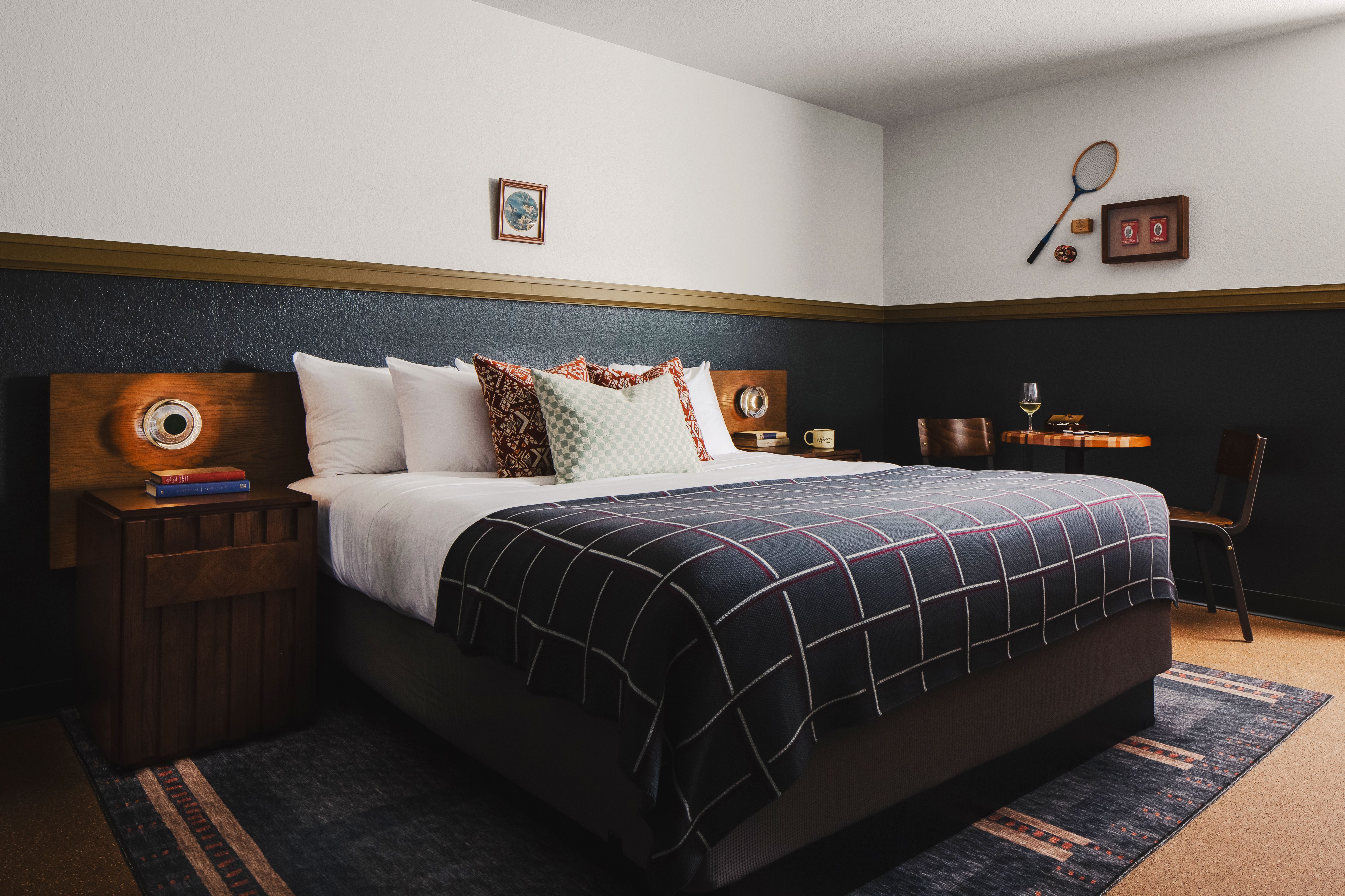 The Ozarker Lodge is an award-winning boutique hotel with a design that evokes vintage motor lodges, located in the popular vacation destination of Branson, MO. Originally a motel from the 1950s, the redesigned interiors were inspired by the surrounding Ozark Mountains, with colors and materials taken from nature. Bernhardt Hospitality collaborated with Parini Design to craft modern rustic furnishings for the 102 guestrooms, including fully-custom beds, bunk beds, wall panel headboards, consoles, credenzas, ottomans, and nightstands. We also created custom vanities for the country chic guest bathrooms.