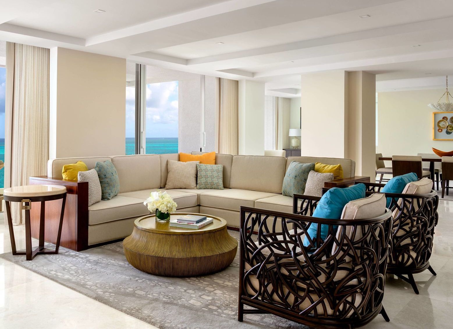 Recognized for over 100 years as the gold standard in hospitality, The Ritz-Carlton turned to Bernhardt Hospitality for its stunning project on Grace Bay in the Turks & Caicos, including fully custom casegoods and seating for guestrooms, suites, public spaces, and outdoor settings. The guestrooms are serene by the sea, and the embodiment of everything that makes Bernhardt Hospitality different, including beautiful materials like capiz shell, sumptuous leathers, sleek metals, unique wood species, and woven fibers.